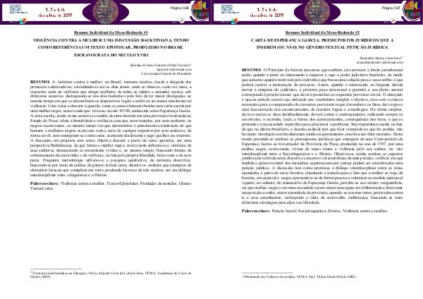 Palavras-chave: Violência contra a mulher. Textos Epistolares. Produção de sentidos. Gênero