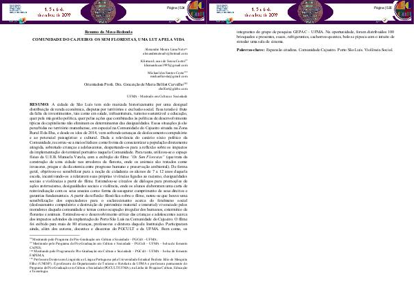 Palavras-chave: Expansão citadina. Comunidade Cajueiro. Porto São Luís. Violência Social.