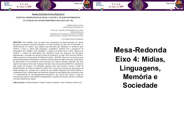 Palavras-chave: Democratização. Cultura. Projetos Culturais. Centro Histórico de São Luís.