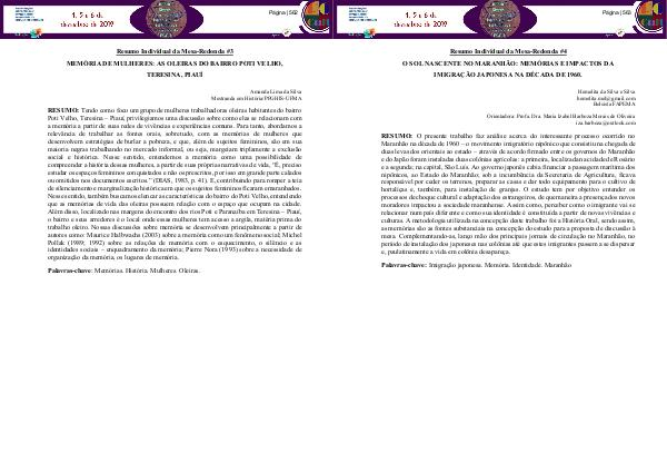 Palavras-chave: Memórias. História. Mulheres. Oleiras.