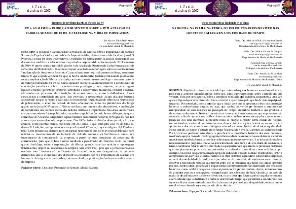 Palavras-chave: Discurso. Produção de Sentido. Mídia. Suzano.