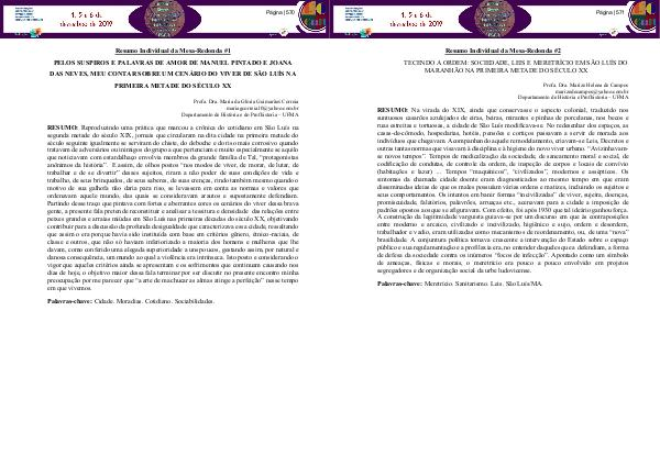 Palavras-chave: Cidade. Moradias. Cotidiano. Sociabilidades.