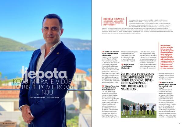MICHELE GIRAUDO , GENERALNI MENADŽER ONE & ONLY PORTONOVI RIZORTA U CRNOJ GORI , iza sebe ima bogatu poslovnu karijeru i životno iskustvo koje je stekao radeći u raznim djelovima svijeta . U Crnu Goru je došao sa Mauricijusa gdje je radio u One & Only Le Saint Géran . Preselio se u Boku DA BI SA SVOJIM TIMOM OTVORIO prvi One & Only rizort u Evropi . Upravo ga je posao prvi put doveo u našu zemlju , i to 13 . decembra 2017 . godine , na intervju za poziciju generalnog menadžera One & Only Portonovi . Iako je bila zima dan je bio posebno sunčan , što mu je omogućilo da već tada vidi i doživi Bokokotorski zaliv u svoj njegovoj zadivljujućoj ljepoti . Danas , dok radi na pripremi otvaranja najluksuznijeg rizorta u regionu , uživa u blagodetima prirode i klime na obali , aktivnostima na otvorenom , ali i upoznavanju cijele teritorije Crne Gore ...