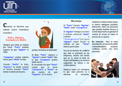 Si “Alguien” trabaja con amor e interés, entonces “Nadie” culpará a "Cualquiera"porque “Alguien” habrá hecho el trabajo en que “Todos” deben participar.