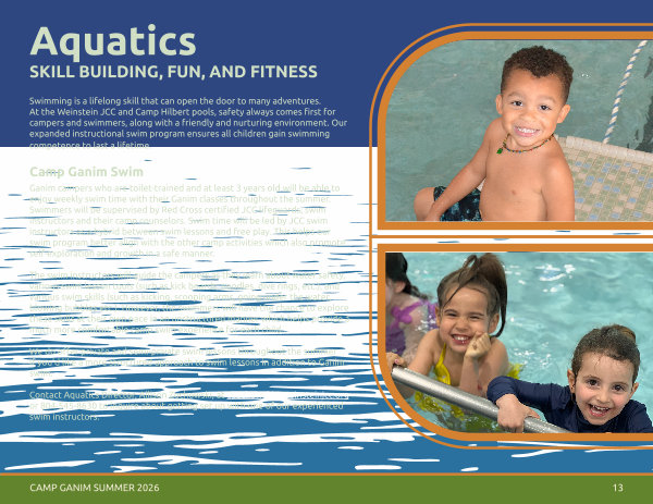 Swimming is a lifelong skill that can open the door to many adventures. At the Weinstein JCC and Camp Hilbert pools, safety always comes first for campers and swimmers, along with a friendly and nurturing environment. Our expanded instructional swim program ensures all children gain swimming competence to last a lifetime.
