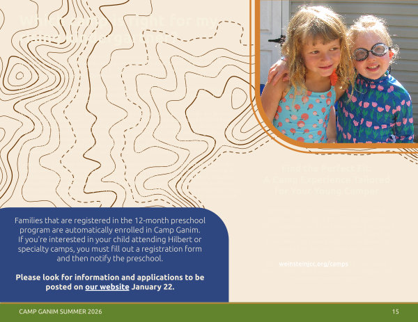 Visit weinsteinjcc. org / camps to learn more about Camp Hilbert and Specialty Camps in the school-age camps magazine.
