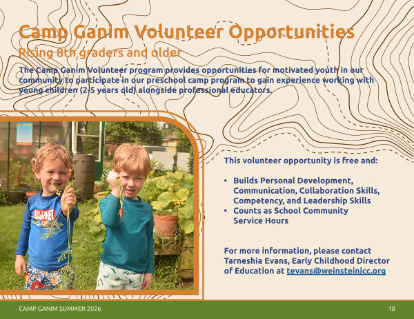 For more information, please contact Tarneshia Evans, Early Childhood Director of Education at tevans @ weinsteinjcc. org