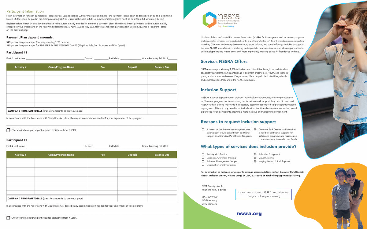 Northern Suburban Special Recreation Association( NSSRA) facilitates year-round recreation programs and services for children, teens, and adults with disabilities who live in 13 northern suburban communities, including Glenview. With nearly 500 recreation, sport, cultural, and social offerings available throughout the year, NSSRA specializes in introducing participants to new experiences, providing opportunities for skill development and leisure time, and, most importantly, creating space for friendships to thrive.