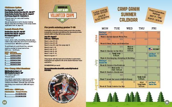 Please check fees and times on the Camp Ganim