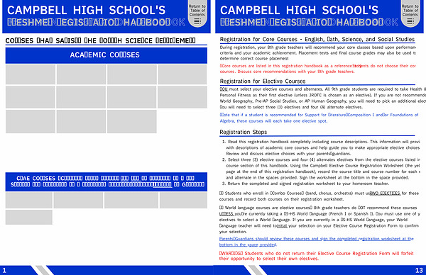 1. Read this registration handbook completely including course descriptions. This information will provide you with descriptions of academic core courses and help guide you to make appropriate elective choices. Review and discuss elective choices with your parents / guardians.
