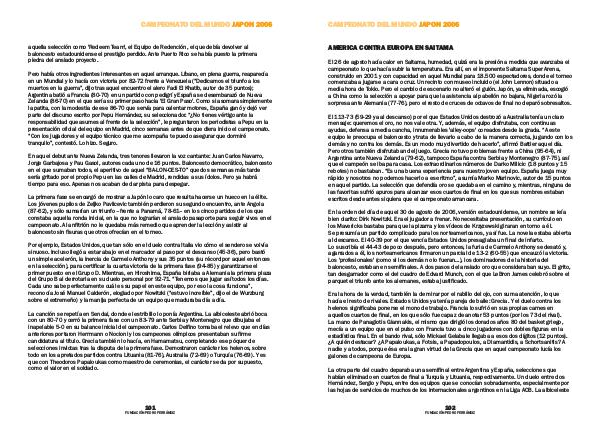 El 26 de agosto hacía calor en Saitama, humedad, quizá era la presión a medida que avanzaba el campeonato lo que hacía subir la temperatura. Era allí, en el imponente Saitama Super Arena, construido en 2001 y con capacidad en aquel Mundial para 18.500 espectadores, donde el torneo comenzaba a jugarse a cara o cruz. Un recinto con museo incluido( el John Lennon) situado a media hora de Tokio. Pero el cambio de escenario no alteró el guión. Japón, ya eliminada, escogió aChinacomolaselecciónaapoyarparaquelaasistenciaalpabellónnobajara, Nigeriarozóla sorpresa ante Alemania( 77-76), pero el resto de cruces de octavos de final no deparó sobresaltos.