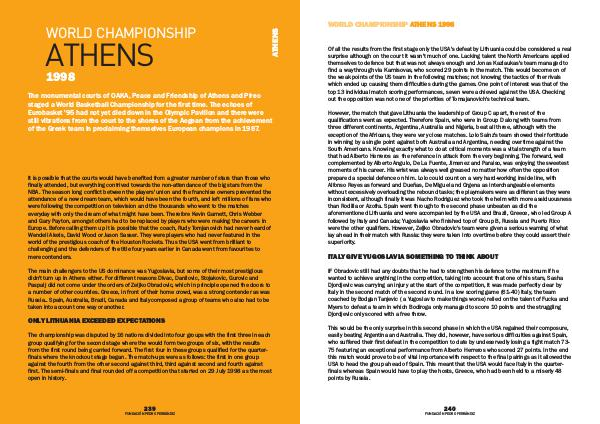 The monumental courts of OAKA, Peace and Friendship of Athens and Pireo staged a World Basketball Championship for the first time. The echoes of Eurobasket ' 95 had not yet died down in the Olympic Pavilion and there were still vibrations from the court to the shores of the Aegean from the achievement of the Greek team in proclaiming themselves European champions in 1987.