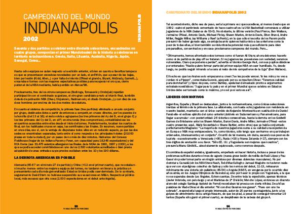 Tal acontecimiento, dicho sea de paso, sería la primera vez que sucediese, al menos desde que en 1992 – salvo el paréntesis comentado de hace cuatro años- la USA Basketball comenzara a utilizar jugadores de la NBA( balance de 53-0). No obstante, la última versión( Paul Pierce, Ben Wallace, Jermaine O ' Neal, Antonio Davis, Michael Finley, Shawn Marion, Antonio Davis, Elton Brand, Andre Miller, Reggie Miller, Jay Williams y Raef LaFrentz), en la que sólo el escolta de los Pacers podía presumir de haber ganado algo, se antojaba ante quienes había visto a las anteriores como la peor de todas ellas, si bien también se vislumbraba potencial más que suficiente para-bien preparaditos, concentrados y en casa- proclamarse campeona del mundo. Pero …