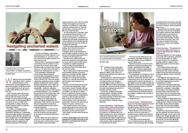 Dr Rachel Buchanan – “ The pandemic has made clear that digital technologies can be used to help students who struggle to attend school ” Buchanan ’ s expertise is on how changing technologies affect education , particularly focusing on their effects on equity . She says COVID-19 “ has revealed the teaching workforce ’ s agility in using digital technologies to meet the needs of students ”.