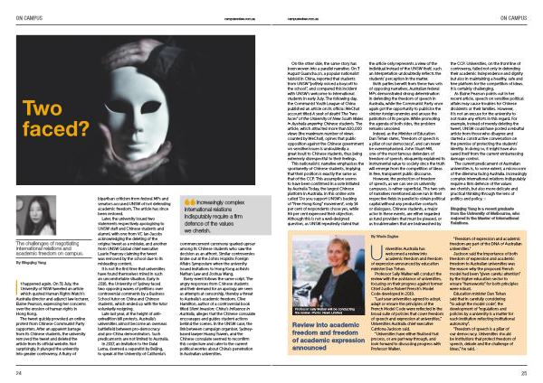 However , the protection of freedom of speech , as we can see on university campuses , is rather superficial . The two sets of narratives mentioned above run in their respective fields in parallel to obtain political capital without any productive contacts or dialogues . Chinese students , a major actor in these events , are either regarded as fund providers that must be pleased , or as troublemakers that are brainwashed by the CCP . Universities , on the front line of controversy , failed not only in defending their academic independence and dignity but also in maintaining a healthy , safe and free platform for the competition of ideas . It is certainly challenging .
