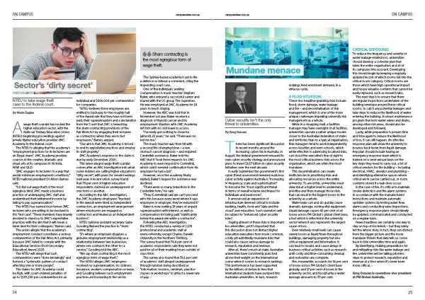 “ NTEU believes these employees are entitled to back-pay for the roughly half of the Award rate that they have not been paid , their superannuation and a declaration from the Court that JMC is breaching the sham contracting provisions of the Fair Work Act by engaging their lecturers as contractors when they are in fact employees ,” Barnes argued .