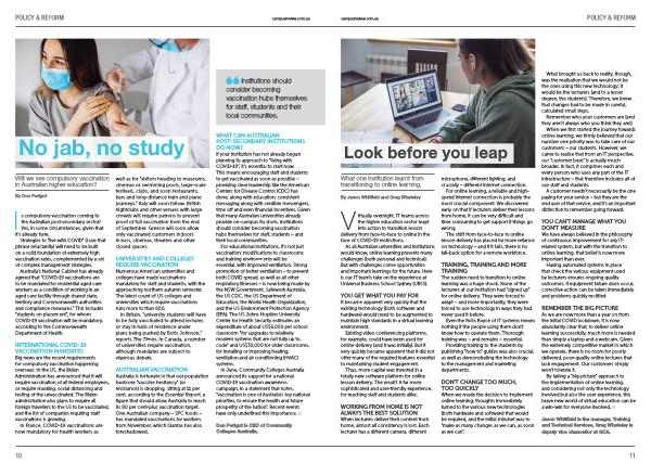 In June , Community Colleges Australia announced its support for a national COVID-19 vaccination awareness campaign , in a statement that notes , “ vaccination is one of Australia ’ s top national priorities , to ensure the health and future prosperity of the nation ”. Recent events have only underlined this importance . ■