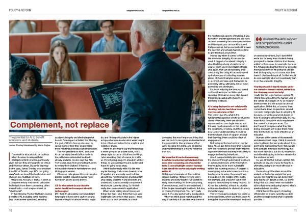 The vice president for APAC adds that AI can be highly beneficial for students too , with some automated feedback already available . He also says that AI is “ not too far away from prompting students to review their citations ” if there ’ s a mismatch between in-text references and bibliographic entries .