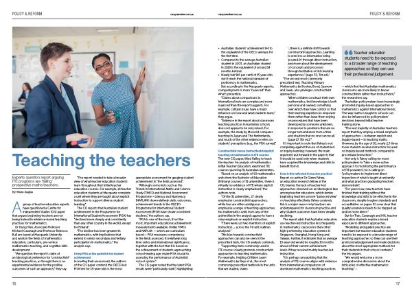 A group of teacher education experts have questioned a Centre for Independent Studies ( CIS ) paper that argues beginning teachers are not being trained in evidence-based teaching practices for mathematics .
