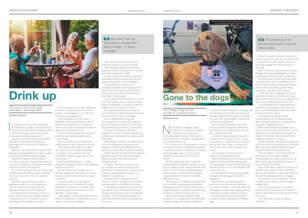 The University of Queensland is looking at the effect of animal-assisted education on tertiary students to determine whether having therapy dogs in lectures and tutorials would benefit their mental health .