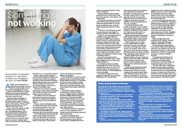 “[ Nursing schools ] work closely with hospitals and health services across the nation to ensure best practice at all times,” she says.“ I think the standard of Australian nurses is very good.” campusreview. com. au | 23