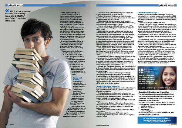 As Loughran said:“ It is a complex issue that is made way too simplistic by just using ATAR as a measure of the status of teaching, but sadly, when it is portrayed as the only measure, it becomes a self-fulfilling prophesy and continues to undermine a profession that is crucial to the health of the nation.” ■