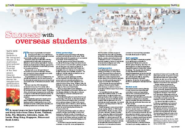 Our globalisation success is underpinned by our operational experience over the past 25 years in the international market where we now have 56 per cent market share of international students in TAFE NSW.