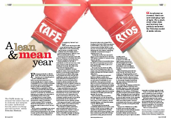 As gloomy as it seems, there are now emerging rays of light. For a start, every other state and territory has publicly eschewed the Victorian model of skills reform. the same footing as the private RTOs. Funding for the public TAFEs was slashed by $ 300 million a year, with none of this nonsense about funding TAFEs to meet any sort of community service obligations( delivering into thin markets, maintaining a relatively comprehensive range of offerings and so on).