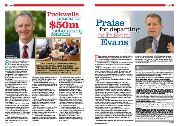 Abbott also praised Tuckwell for his generosity:“ Fifty million dollars to fund scholarships for people who might otherwise be unable to attend one of our finest universities is a truly remarkable gift to our nation.” ■