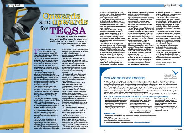 The Tertiary Education Quality and Standards Agency has been in existence as Australia’ s independent national regulator of higher education for just over a year.