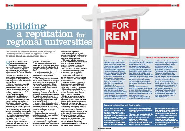 “ One of the reasons regional universities are so important is that two of every three students they educate go on to work in regional localities, thereby investing professional skills qualifications and knowhow into regional Australia,” Nash said. n