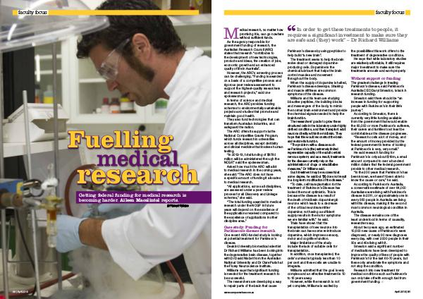 Research into new treatment for medical conditions such as Parkinson’ s can only take off with enough fuel from government funding. n