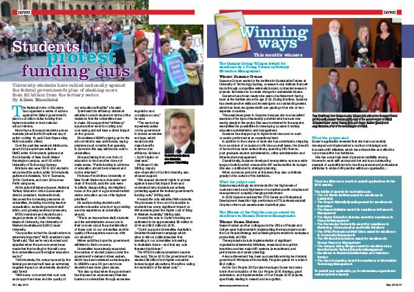 10 | May 2013 our education will suffer,” she said. Tyrrell said the efficiency dividends will affect current students in terms of the decisions that the universities have to make. She argued that“ efficiency” is just another word for cutting and cost saving and will have a direct impact on the ground.