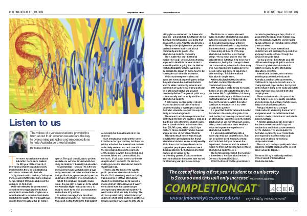 The voices of overseas students provide the truth about their experiences and are the key to overcoming prejudice and misconceptions to help Australia be a world leader.