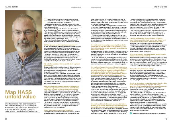 You mention in the report that many of the sector’ s problems, such as ballooning teacher-student ratios, an ageing workforce and lack of funding, could largely be solved within existing funding frameworks if universities had the will to explore alternatives. What effect would the planned reforms have on universities’ ability to solve the HASS sector’ s problems? Not necessarily any. The kind of thing we’ re talking about is the universities making slightly different decisions about their strategic expenditure. So at the present they’ re sinking a lot of money into biomedical and hard sciences in research for instance – but they’ re putting almost nothing into HASS. There are a few, like the University of Western Sydney, that put a lot of money into it. They’ ve achieved great results as a consequence.