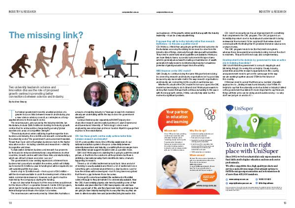 CR: Can these growth centres really achieve better links between research and industry? CD: It’ s a very positive move. One of the big weaknesses in our national innovations system is the poor connectivity between university researchers and industry, so anything that encourages more connectivity I would suggest should be seen as a positive move.