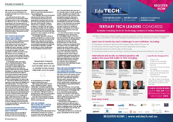 EduTECH’ s Tertiary Tech Leaders Congress is the only opportunity in 2014 to hear from the world’ s leading thinkers on how your institution can harness emerging technologies and meet the needs of tomorrow’ s students!