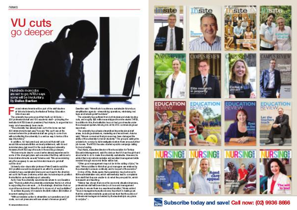 Paul Abela, executive director of the Association for Tertiary Education Management, said it’ s obvious that VU has thought hard about what to do to make the university sustainable. However, he added that corporate knowledge and excellent management skills needed in tough economic times will be lost.