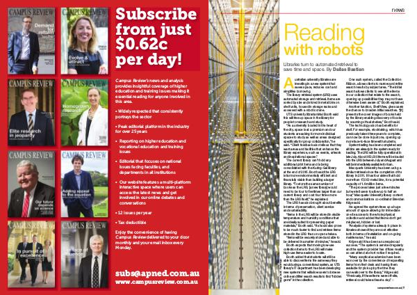 “ Many sceptical academics have been won over by the convenience of requesting items from their desk and having them available for pick up by the time they can walk over to the library,” Krige said.“ Previously, if these items were off-site, retrieval could take at least a day.” ■