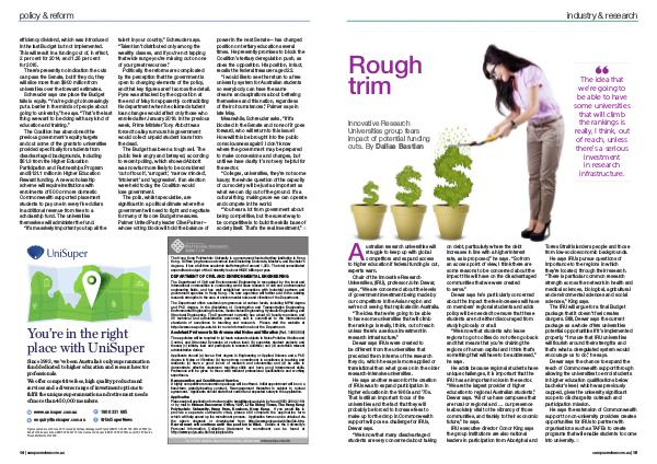 The IRU will argue for a final Budget package that it doesn’ t feel creates dangers. Still, Dewar says the current package as a whole offers universities potential opportunities if it’ s implemented properly.“ I’ m sure that IRU universities will flourish around their strengths and that’ s what a deregulated system would encourage us to do,” he says.