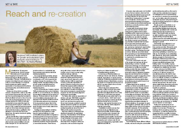 As a regional training provider, we face the same challenges as our metropolitan counterparts: a VET reform agenda that is driving change; the opening up of the training market; changing funding models at both a state and federal level; and the requirement to meet the needs of individual students.
