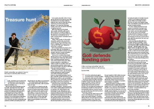 “ Ultimately, it would mean that you would have the Go8 universities basically emerging as leaders in the field with their poor cousins lagging behind, and that wouldn’ t be a good outcome,” Simms said.“ We need to ensure that there’ s equity in funding and we need to ensure that all universities gain access to that critical funding.” ■