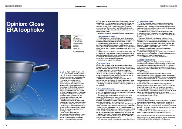 One must hope, however, that the ERA measures what matters if its numbers are to be used more widely, as the Go8 suggests. Unfortunately, the framework’ s rules appear to have more loopholes than Swiss cheese. This creates a range of opportunities for ducking and diving.