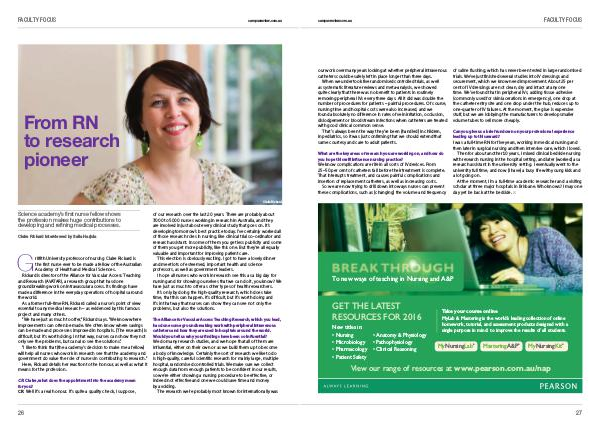 CR: Well it’ s a real honour. It’ s quite a quality check, I suppose, of our research over the last 20 years. There are probably about 3000 to 5000 nurses working in research in Australia, and they are involved in just about every clinical study that goes on. It’ s developing tomorrow’ s best practice today. I’ ve certainly worked all of those research roles in nursing, like clinical trial co-ordinator and research assistant. In some of them you get less publicity and some of them you get more publicity, like this one. But they’ re all equally valuable and important for improving patient care.