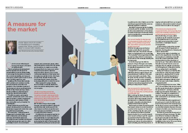 Your group is leading the development of an engagement metric, which you’ re saying can be published alongside the ERA. How will this work and how will it benefit researchers? ATSE first formally proposed that we needed a metric like this around the middle of last year. The need to measure impact or engagement is not a novel idea – the Australian Technology Network( ATN) has been looking at this for several years. ATSE itself has been internally debating this for many years.