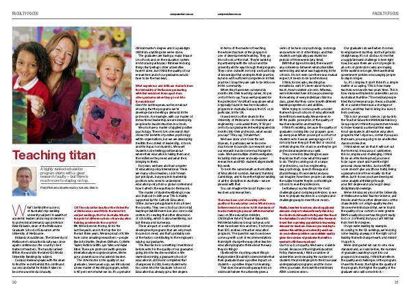 There has been a lot of scrutiny of the quality of the education sector. What do you believe needs to be done to lift standards of teacher training in general within Australia? I was on [ the education minister, Christopher Pyne’ s ] Teacher Education Ministerial Advisory Group last year, and there have been tens and tens, if not more than 100, reviews of teacher education programs. The question was how do we come up with a set of recommendations that might change the way other teacher education programs think about the way they do things?