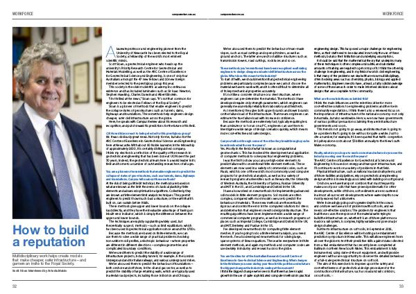 Can you talk us through some of the other key breakthroughs you’ ve been involved with over the years? Yes. Mostly in the field of what’ s known as computational geomechanics. This has involved the development and application of computer methods to solve practical engineering problems. I was the first to show you can use high-order elements to predict failure with conventional finite element methods. These elements are now used in a variety of commercial codes, such as Plaxis, which is one of the world’ s most commonly used computer programs for geotechnical analysis, as well as in a variety of research programs at universities such as Newcastle, the University of Western Australia, the University of Sydney, Purdue University and MIT in the US, and Cambridge and Oxford in the UK.