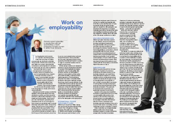 The Organisation for Economic Co-operation and Development states that more than 4.5 million young people are electing to undertake study outside of their home country each year. While such study is often primarily considered a useful experience to broaden the mind, there are now other motivations. Faced with high levels of youth unemployment, and pressure to provide a return on investment for ever-increasing tuition fees, students now want more than a piece of paper. Some Australian education institutions now recognise that attention needs to be given to employability skills for their domestic and international students. Only recently, however, has this become the priority it needs to be if Australia is to remain a first-choice study destination.
