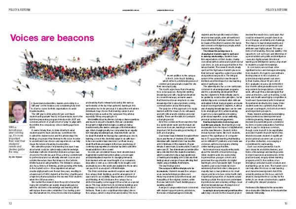 We called the project‘ real learning’ because it was about what could be called really useful knowledge. Australian Catholic University’ s Brisbane campus was chosen for the site because it has a strong commitment to professional and vocationally relevant courses and a distinctive values base that draws on the Catholic intellectual and caring tradition. The Brisbane campus also has a history of listening, and responding effectively, to the student voice – it has experienced annual double-digit growth over the last five years, resulting in a headcount of 5400 students at the time of writing and a trajectory that would allow it to exceed 7000 students when the cliff year arrives.