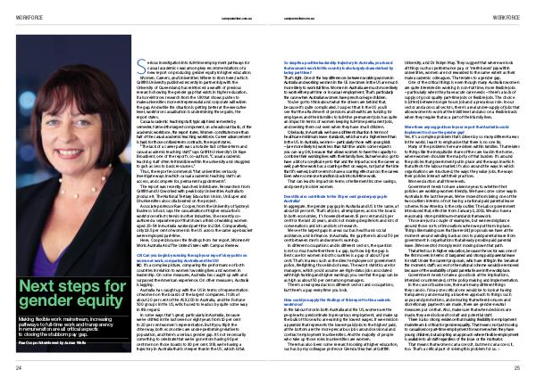 Were there any suggestions in your report that Australia could implement to close the gender gap? Yes. It’ s a complex problem that’ s driven by so many different areas in the world. I want to emphasise that there is no one fix.